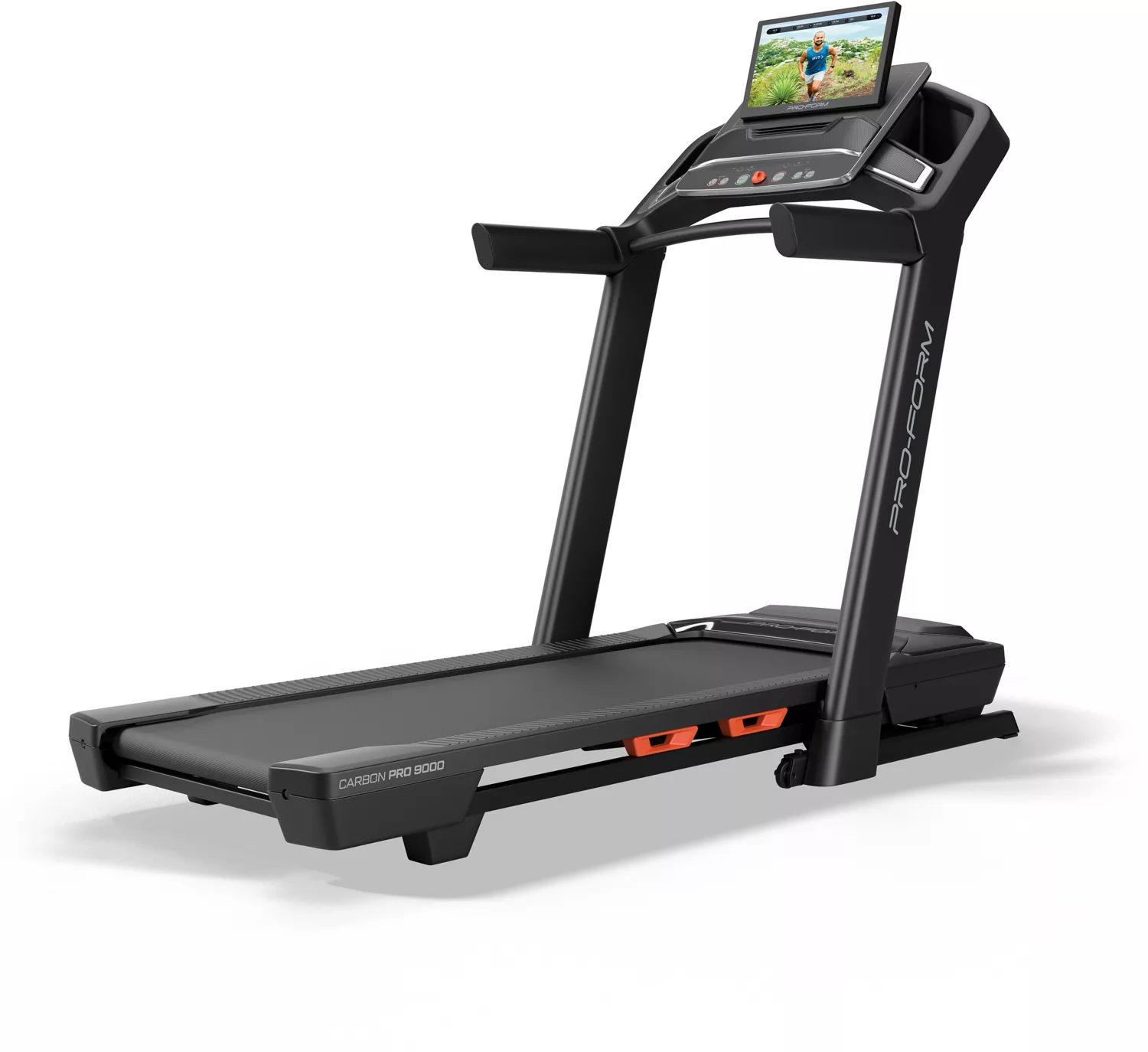 The ProForm Carbon Pro 9000 Treadmill delivers upgrade-level home cardio with a 3.6 CHP motor, large 20″ × 60″ deck, and 0–12% incline. Featuring a 16″ Smart HD touchscreen and full iFIT® integration for immersive trainer-led workouts, it also includes comfortable cushioning (ProShox™), fold-away design (SpaceSaver®), and built-in fan/audio. Ideal for serious walkers and runners wanting a high-quality home treadmill that blends performance and smart features.